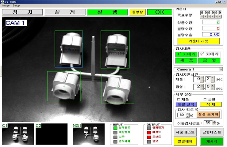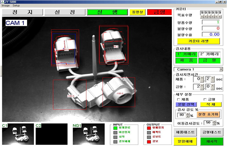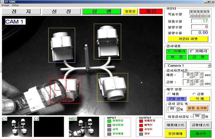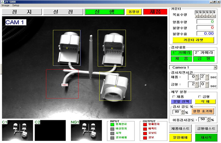 감시장치가 작동중, 일부의 이물질이 끼었을 때의 NG 이미지 입니다.